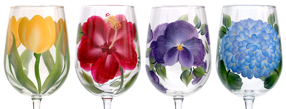 The high-quality wine glasses I use are considered all-purpose and versatile enough for both red or white wine. While the paint manufacturer describes them as top-rack dishwasher safe, you will enjoy your Wineflowers glasses for many more years if you hand-wash them.